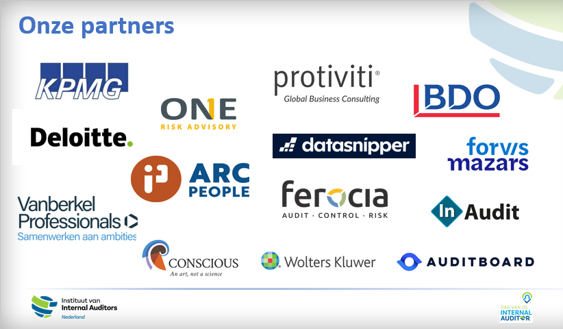 We gaan weer De Dag van de Internal Auditor organiseren. Voor de derde keer. Het wordt een traditie! We bouwen voort op het succes van voorgaande jaren. De opzet van deze dag zal wederom een netwerk- én learning experience zijn! Uiteraard weer met medewerking van onze partners. De Dag van de Internal Auditor is een interactief werkcollege waarbij juist de input van onze leden wordt gevraagd en samen antwoord wordt gegeven op belangrijke vragen om internal audit tot een succes te maken. We vragen onze partners hun expertise te delen en de deelnemers te begeleiden bij verdere discussies en uitwisseling van ideeën.