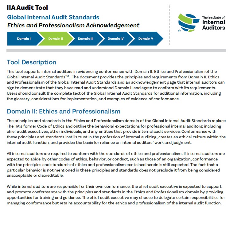 The executive summary below is available for public download. In addition, members can download the “Chief Audit Executives' Guide to Domain III: Governing the Internal Audit Function” and four presentations that facilitate the discussion with the board and senior management about Domain III’s “essential conditions” and the principles and requirements of the Global Internal Audit Standards.